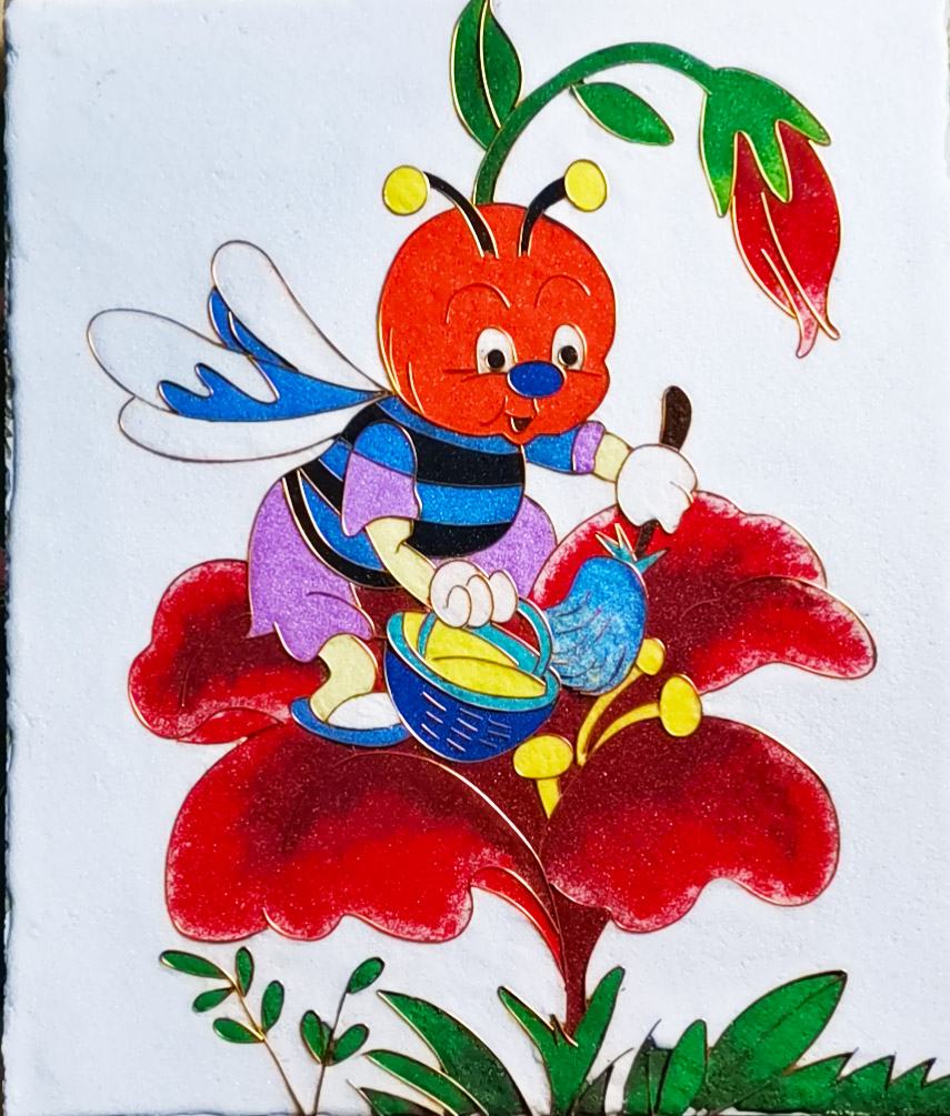 2020年5月20日,蘑菇峪鎮扶貧生產車間貧困人員張秀榮、張玉紅等人來公司考察學習,鄭鐵軍董事長帶領參觀了鄭氏砂藝非遺展廳,貧困人員張秀榮表示,這次參觀使自己對砂畫的認識和制作起到了很大的幫助,打破了對砂畫的原有認知,她決定繼續努力學習和練習砂畫制作技巧,提升自己的專業水平,爭取早日達到公司技師們那樣的水平。貧困人員此次前來還提交了扶貧作品107幅,此次回收作品較以往不同,尺寸有所加大,按扶貧就業合同規定,每幅價格為25元,這樣獲取的計件收益就是2675元,每人另外還有保底工資600元,獎金300元。