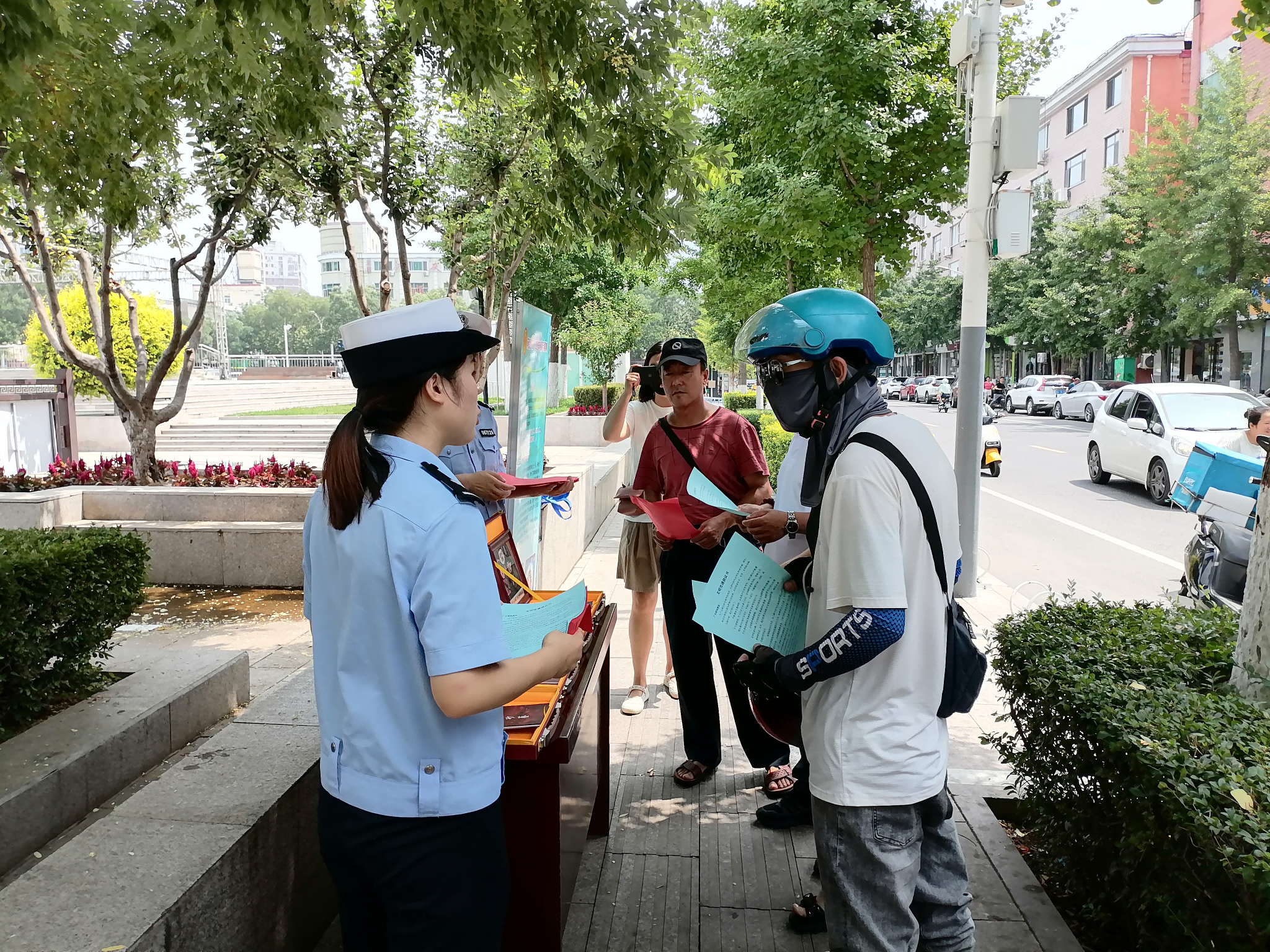 活動最后,在興隆縣中心廣場進行了交通安全宣傳展示。交警們通過傳單和鄭氏砂藝作品內容,生動地向市民講解了闖紅燈、不佩戴安全頭盔、不系安全帶、超載和酒后駕駛等交通違法行為的危害性,引導大家自覺遵守道路交通安全法律法規,做到“知危險、會避險”,安全文明出行,共同營造安全、暢通、和諧的道路交通環境。